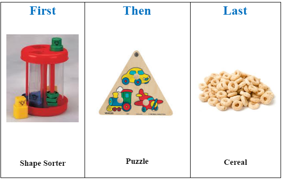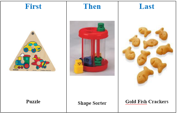 The next time the child is asked to play with these two toys, change the order of the toys in the schedule. You can even change the treat he gets when he is finished.