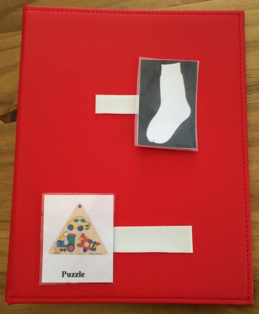 Si su hijo le entrega la imagen del otro objeto, dele ese objeto mientras lo etiqueta, incluso si está seguro de que no es el que realmente quiere. Darle el objeto que coincide con la imagen que ha elegido le ayudará a aprender a distinguir entre las dos imágenes. También le enseñará a prestar mucha atención a la imagen que está sacando de su carpeta.