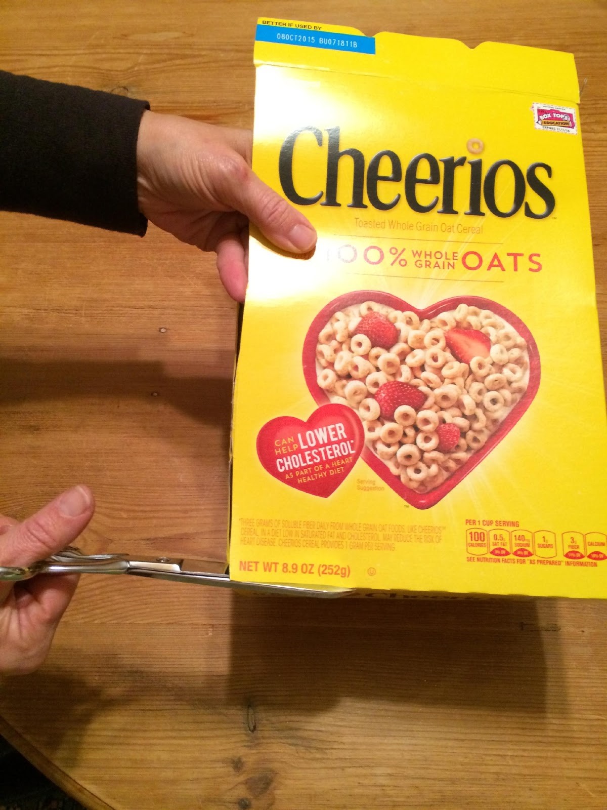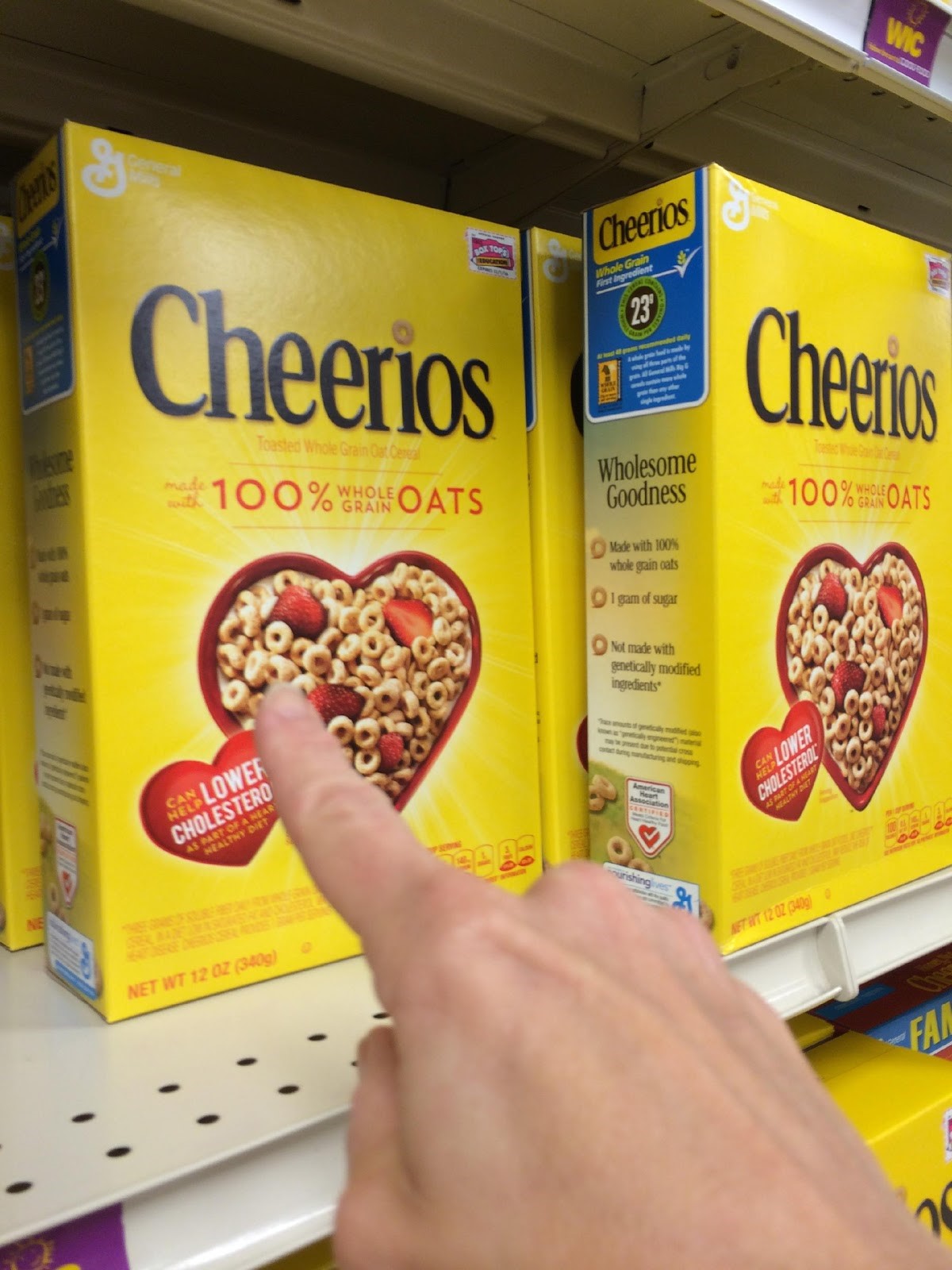 Si tu niña no encuentra el producto que coincide, anímala señalándolo tú mismo. Ayúdala a sostener el recorte del frente de la caja, por ejemplo, la tapa de la caja de Cheerios, junto a una de las cajas de Cheerios en el estante.