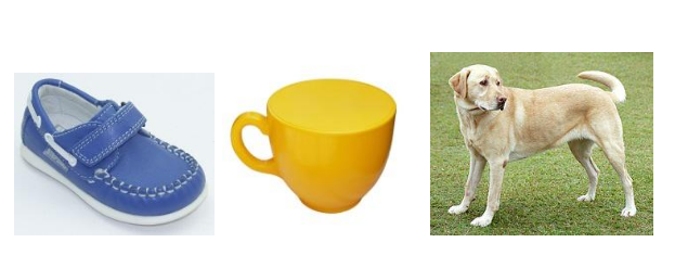 - Coloque tres imágenes de objetos diferentes sobre la mesa delante de su hijo.